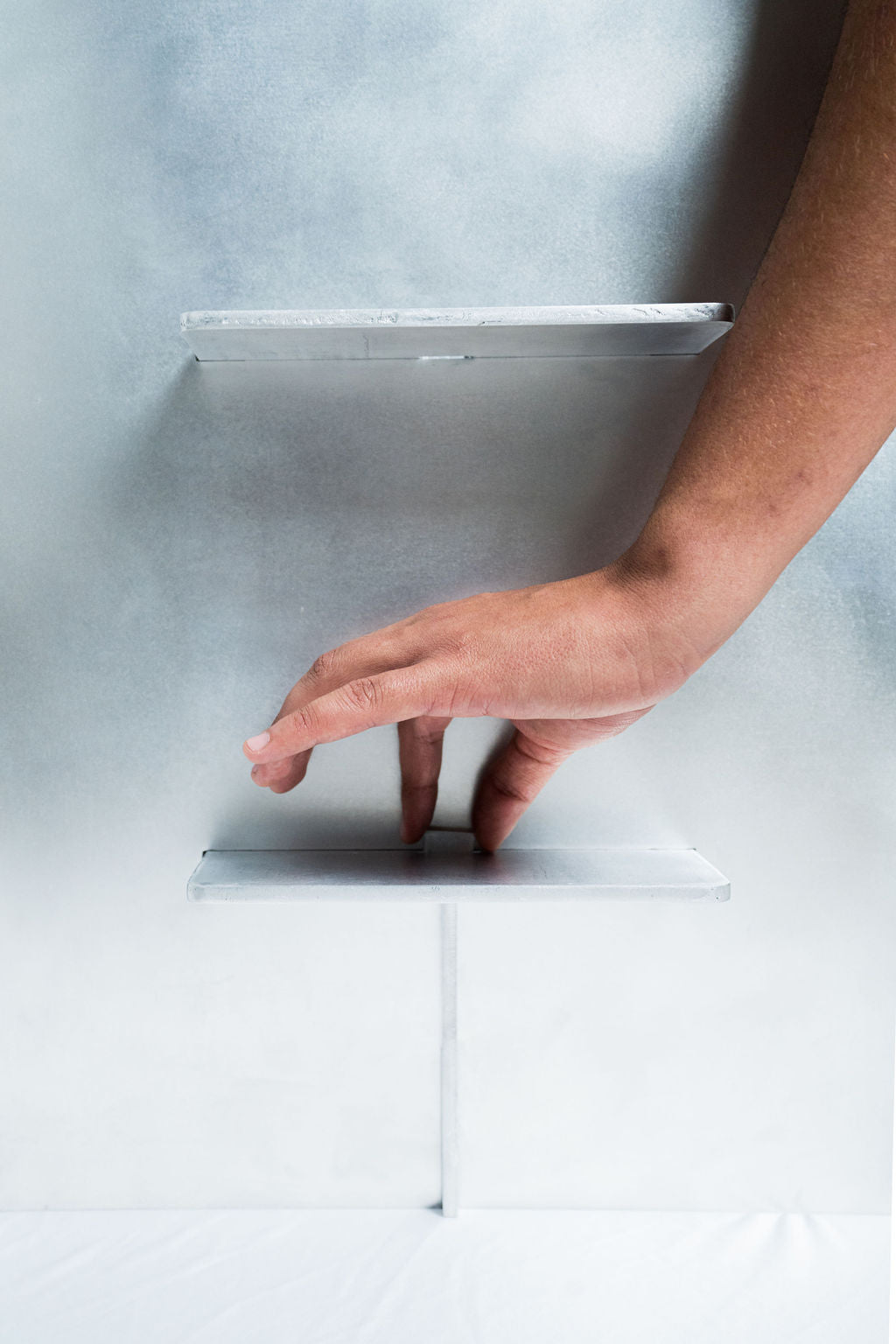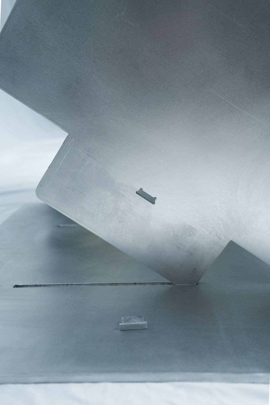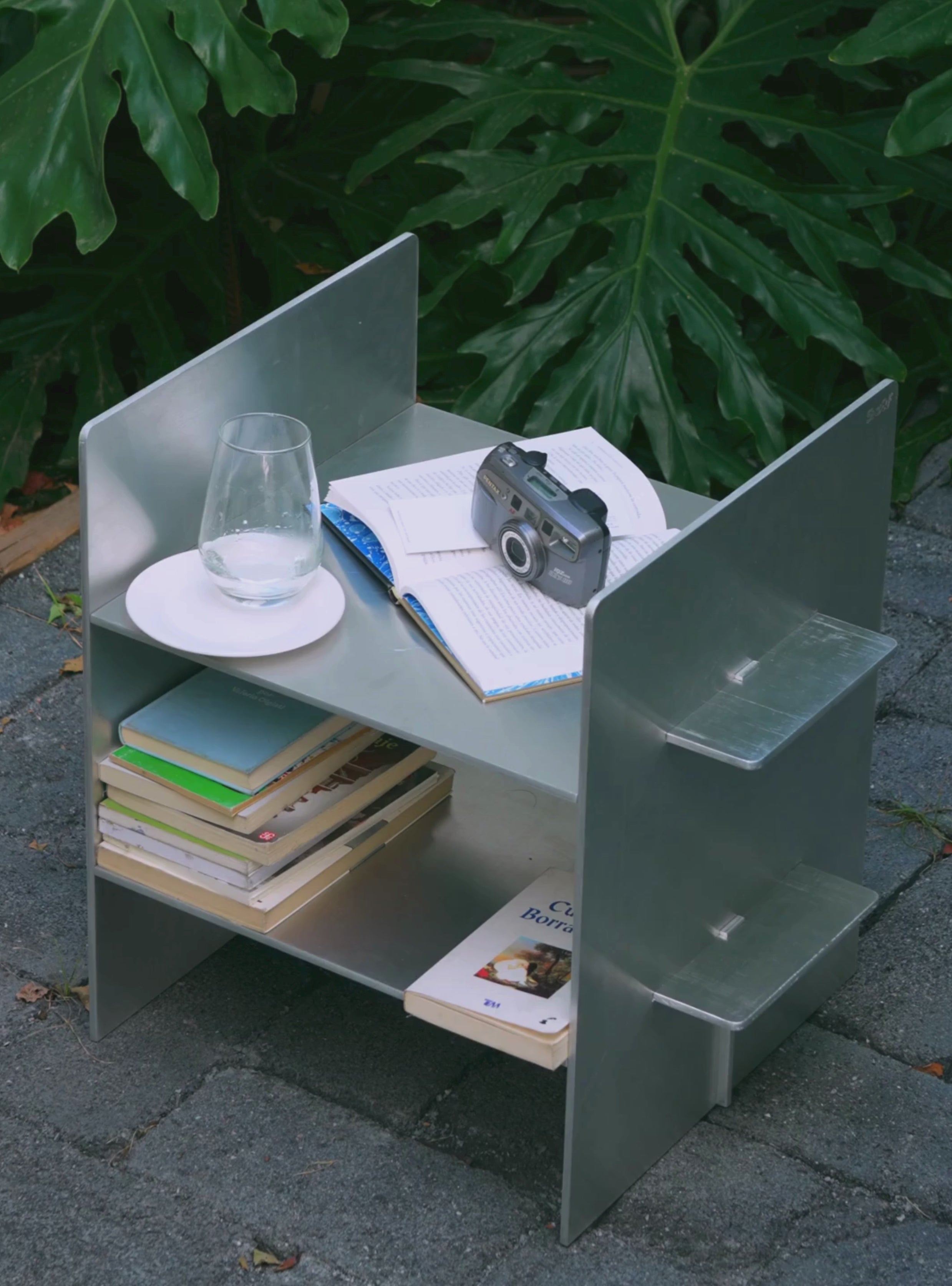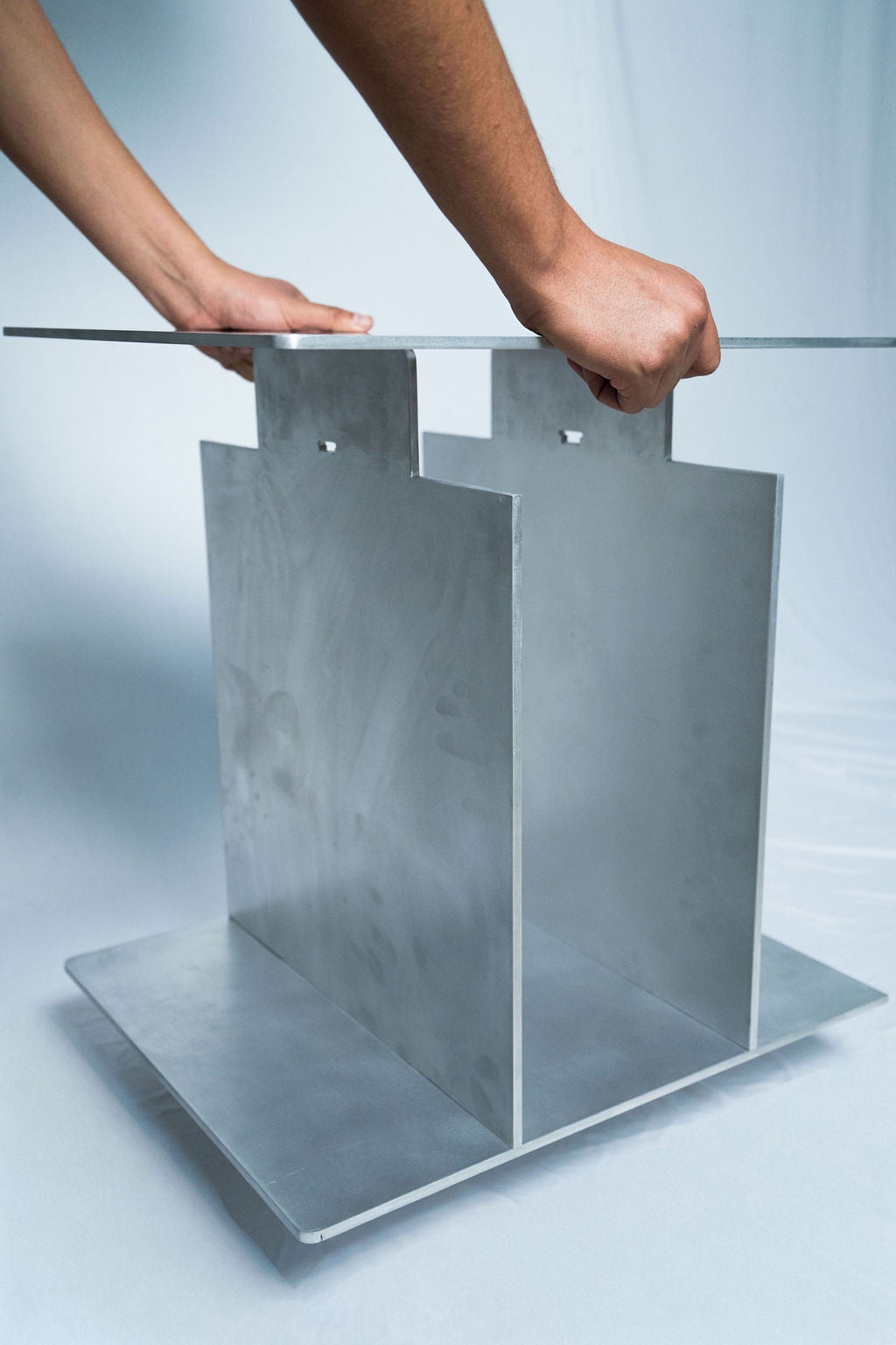 Fabricada en aluminio sólido con acabado natural, cada pieza encaja con la otra creando una estructura limpia, ligera y duradera.